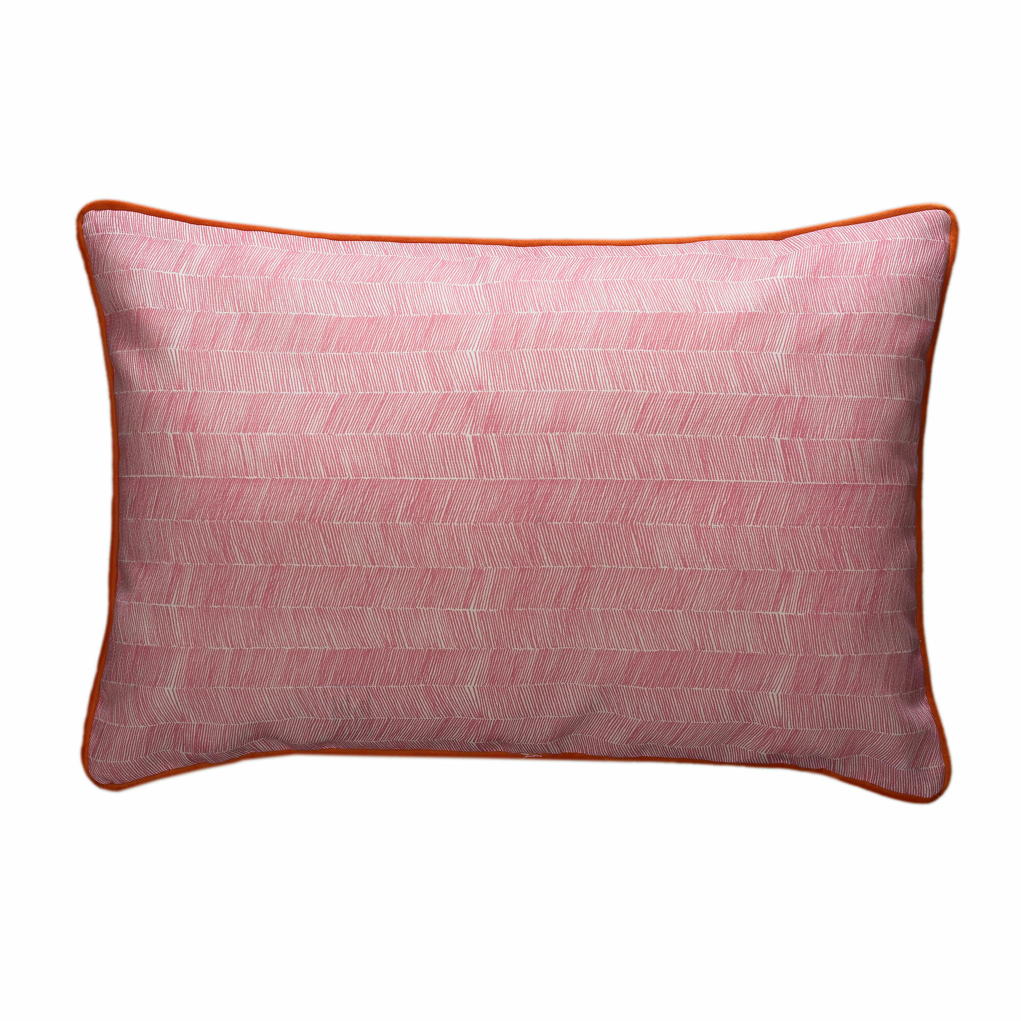 Outdoor bolster cushion in a sophisticated herringbone fabric. Finished off with washable piping in contrasting orange velvet, this cushion has a clean and contemporary feel to turn your outdoor space into a cosy and comfortable living area.